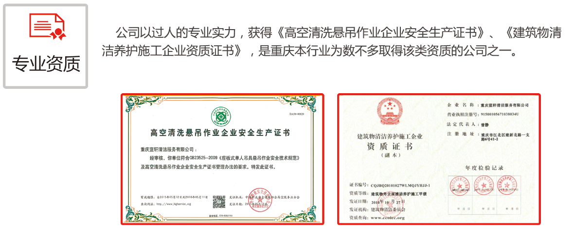 2、擁有齊全的高空作業(yè)相關(guān)資質(zhì)